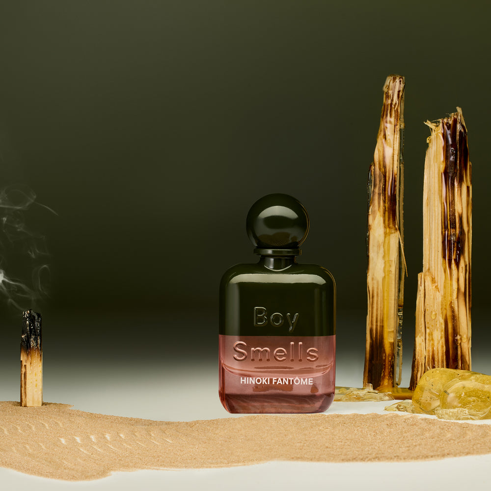 Hinoki Fantôme is my take on capturing the serene and sacred essence of the hinoki forest in a bottle. I wanted to bring that grounding, meditative feeling to life, starting with the smooth, resinous warmth of Japanese hinoki wood. As it develops, you get these earthy layers of tobacco leaves, oakmoss, and a touch of smoked leather that give it a rich, complex depth. The orris and patchouli smoke add a little mystery, making it complex but still so easy to wear. It’s a fragrance that feels like a quiet escape—a way to take that peaceful, wood-smoked vibe with you wherever you go.